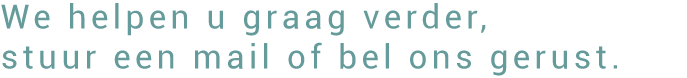 Aarzel niet om contact met ons op te nemen via telefoon of e-mail. We helpen je graag verder!